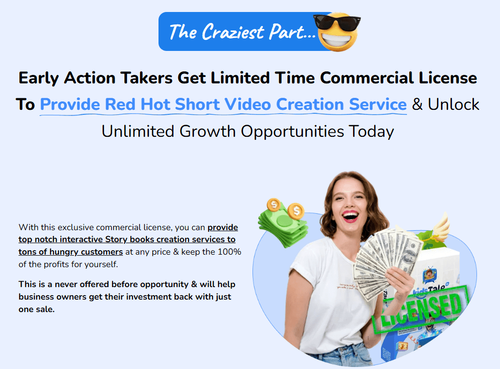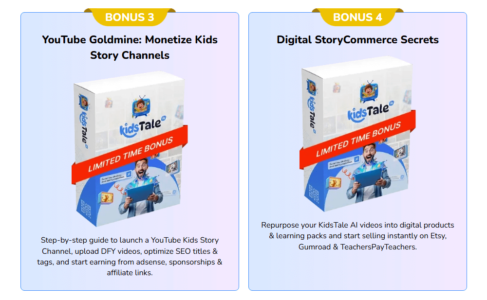 | Funnel Price: | Coupon: “KIDSTALE7” – $7 Off “KIDSTALE5” – $5 Off “KIDSTALE30” – 30% Off OTO 1 KidsTale AI Unlimited ($57) OTO 2 KidsTale AI Traffic ($37) OTO 3 KidsTale AI Studio ($47) OTO 4 KidsTale AI DFY ($147) OTO 5 KidsTale AI Income Maximizer ($37) OTO 6 KidsTale AI Agency ($97-$197) OTO 7 KidsTale AI Reseller ($67-$97) OTO 8 KidsTale AI MegaSuite ($127) *Funnel details in the review* 🤲See all bonuses at the end of this review🤲 |